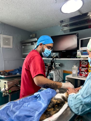 En nuestra clínica contamos con un quirófano adecuado con todos los materiales necesarios para procedimientos quirúrgicos sencillos hasta procedimientos quirúrgicos complicados, el cual es esterilizado en su totalidad con rayos UV para la protección de tu mascota. El quirófano se encuentra equipado con una máquina de anestesia inhalada Ohio de Sevoflorane, un monitor de signos, una incubadora para los pequeños neonatos, aire acondicionado/calefacción para una temperatura óptima durante su cirugía de la mascota.