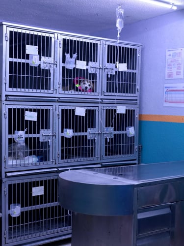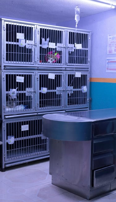 Nuestra clínica Veterinaria CiVets cuenta con instalaciones dirigidas a mascotas con padecimientos que requieren un tratamiento más agresivo y de cuidado intensivo. Contamos con un área de hospitalización, en donde los pacientes son continuamente monitoreados y cuidados por nuestros médicos las 24 horas del día, por lo que su mascota nunca estará solo. Amadas, en esta sala contamos con terapia de oxígeno para aquellos perritos que requieran un aporte mayor de oxígeno puro.